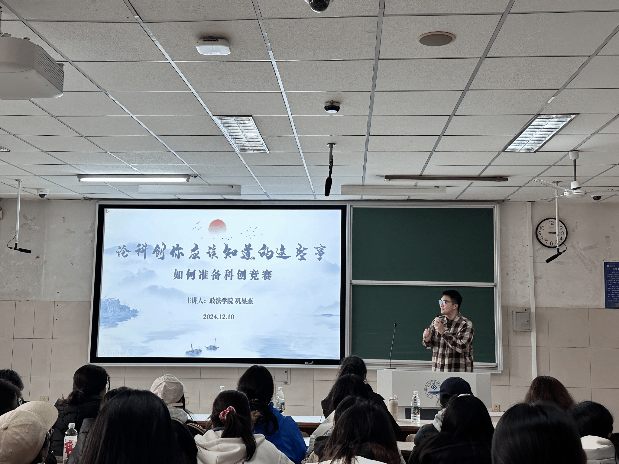 举办法学专业学习经验分享会。法学系主任刘康磊、2024级辅导员沈正浩、高年级优秀学生代表及2024级法学专业全体学生参加活动。