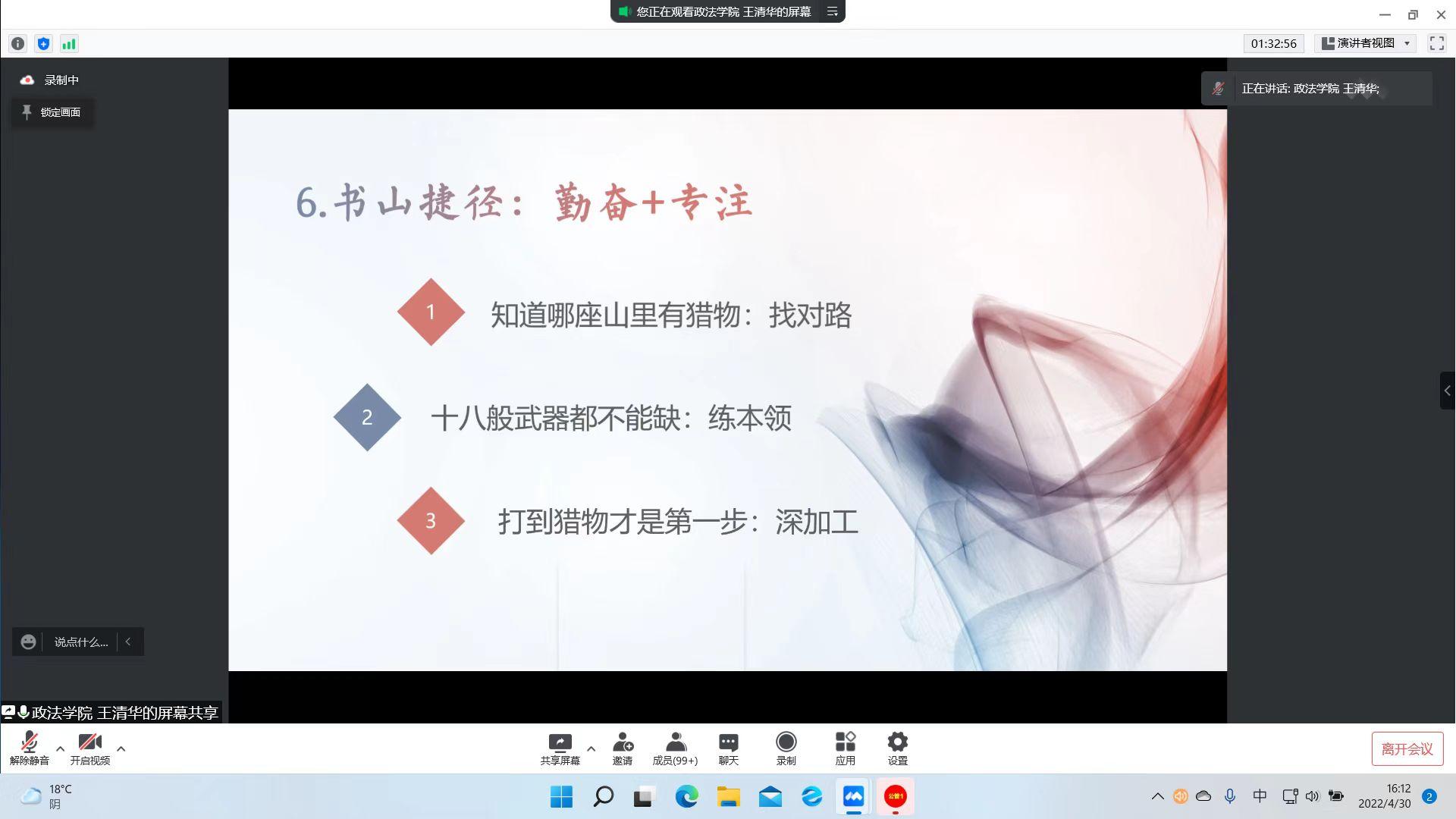 第一个环节,朱赫同学以“优秀团队是如何炼成的”为主题进行分享。他强调参与科创赛事要坚守纯洁的初心,少一份功利,多一份热爱,从践行课堂所学的专业知识,对感兴趣的社会热点问题的实践出发,去参与科创赛事。他提出奉献精神和团队精神是一个优秀团队的必备精神,是一个团队行稳致远的加油剂。不断学习、终身学习的能力也很重要,团队中的同学们拥有着不同的专业背景,但成员们应该不断学习更多的知识,为团队更好地奉献力量,“在集体中奉献自我,在团队中相互成就。”朱赫同学还分享了大量“独家”参赛经验,给在场同学们的科创思路规划提供了更多的灵感。第二环节,王清华同学现身说法,向在场学生分享了进行一项优秀的科研项目研究的过程。他指出一个优秀的科研项目应该注重科学性、创新性和现实性。其中他提到“导师+学生”的科创赛事团队形式,对棋牌游戏