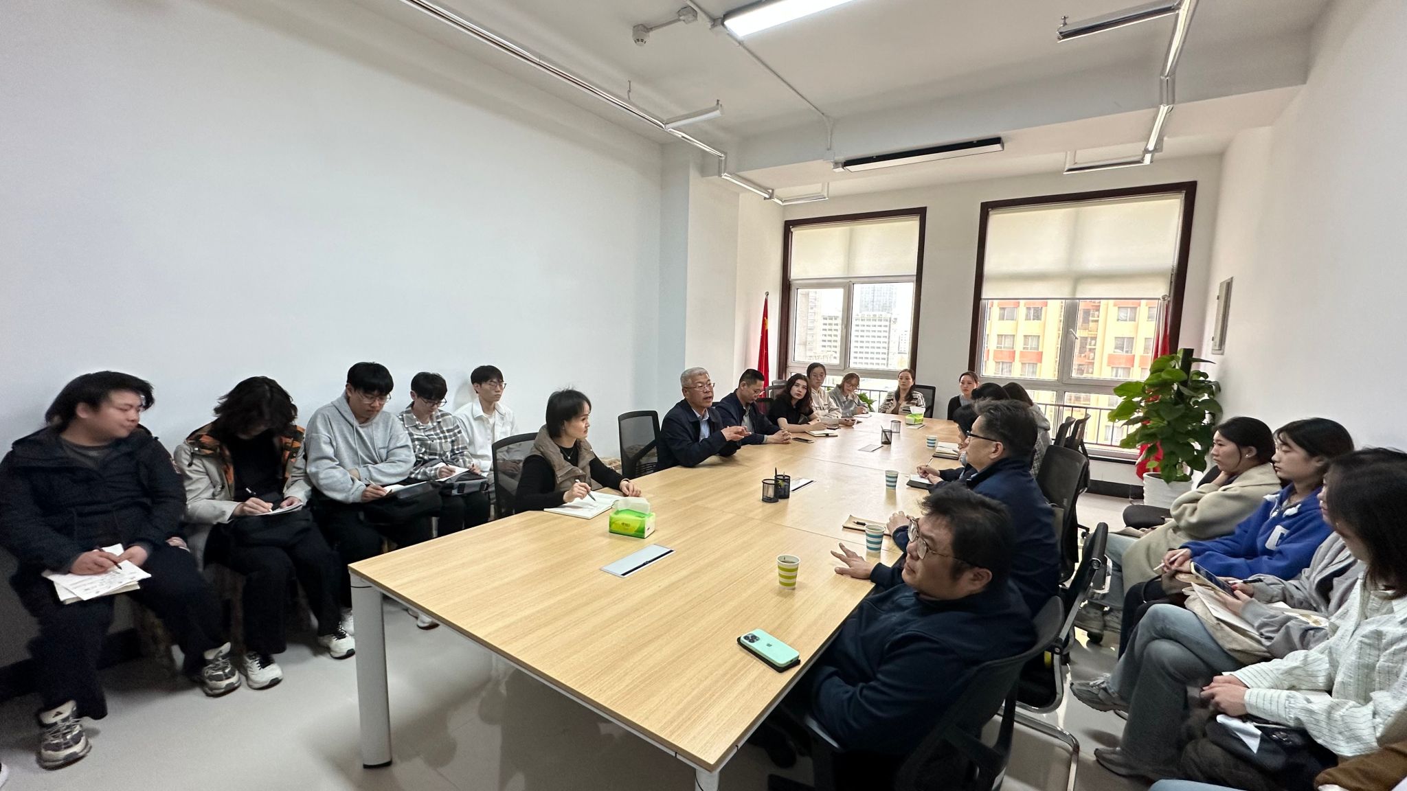 同日上午,在行政管理系教师郝丽、刘涛、刘钟华、韩芳的带领下,13名实习同学来到济南市市中区人社局,并举行实习见面会。市中区人社局周勇局长和徐蕊主任对师生团队的到来致以热烈欢迎。在会上,周勇局长系统介绍了人社局的主要职能与核心工作,针对行政编制管理、延迟退休政策落实、生育政策配套服务、大学生就业帮扶以及人工智能在政务服务中的应用等热点问题,进行了深入剖析与阐释。此次会议,让师生对行政管理专业的实际应用场景,以及人社局的工作体系有了更为清晰的认识。师生通过交流明晰行政管理专业应用场景,深化对人社工作体系的认知,为后续实践奠定理论基础。