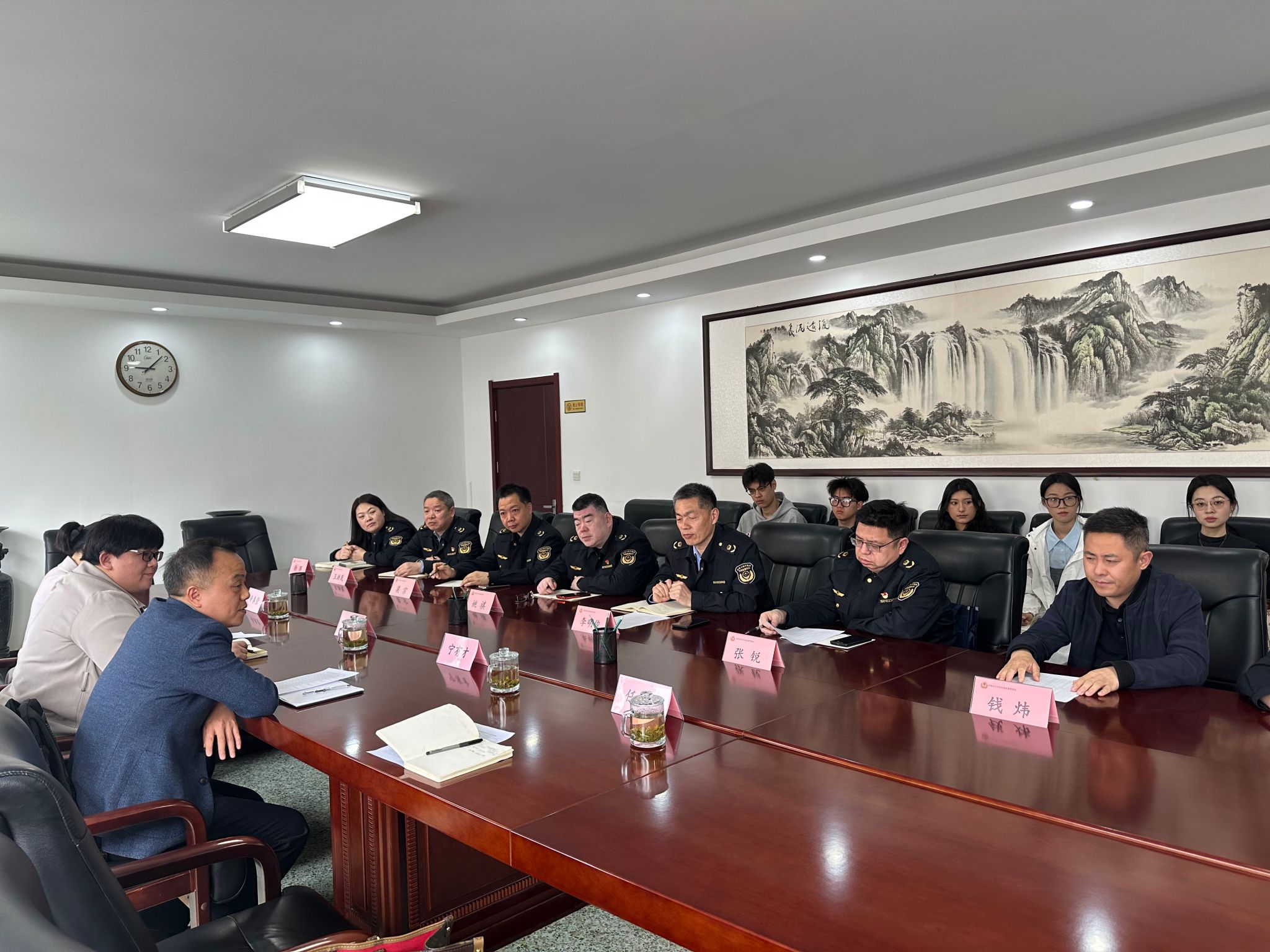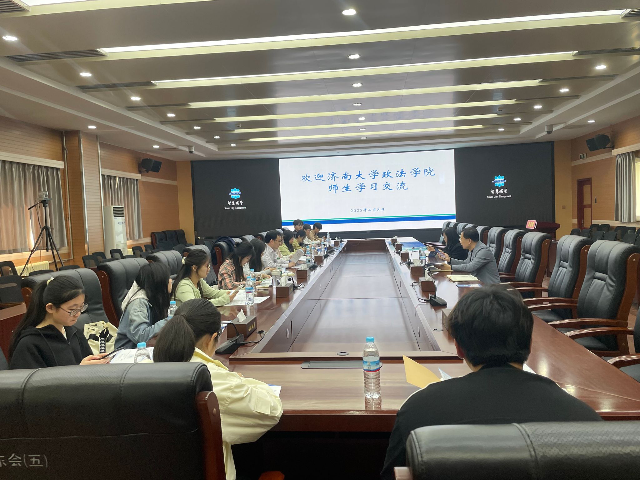 4月8日上午,在城管局见面会上,办公室主任于超发表了开场致辞。他对新加入实习团队的同学们表示热烈欢迎,并介绍了城管局的工作职责、管理范围以及近年来在城市管理方面取得的显著成效,他在致辞中表示,城管局将提供多岗位实践平台,希望同学们可以在城市治理、行政执法等工作中深化专业认知,锤炼实务能力。于主任详细阐述城管执法、智慧治理等职责,并展示城市运行管理服务平台运行机制。智慧城管服务中心主任贾勇带领同学们观看宣传视频和学习"智慧城管"小程序操作,学生直观了解基层治理模式。带队教师吴胜提出实践期望,鼓励同学们虚心学习、主动担当。遵守纪律,积极参与,努力提升自己的专业素养和实践能力,为未来的职业发展打下坚实的基础。