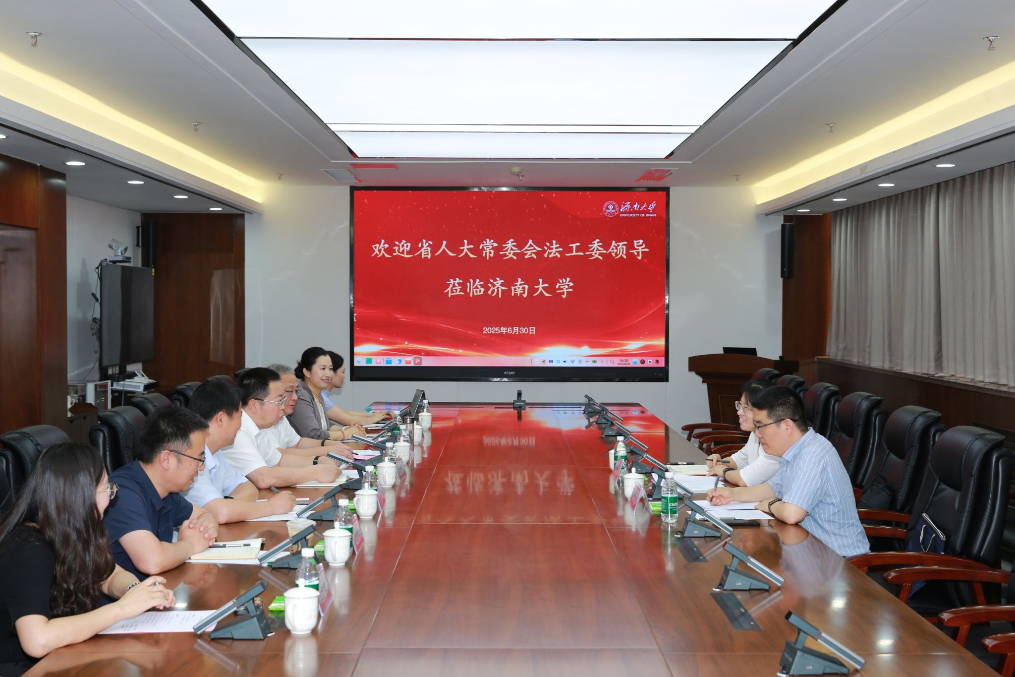 6月30日,山东省人大常委会法工委副主任徐金妹、法工委立法二处处长王芦芦,来校调研济南大学立法研究服务基地建设情况,并召开座谈会。学校党委副书记、校长、立法研究服务基地主任刘宗明,党委常委、副校长黄加栋陪同调研。社科处、棋牌游戏