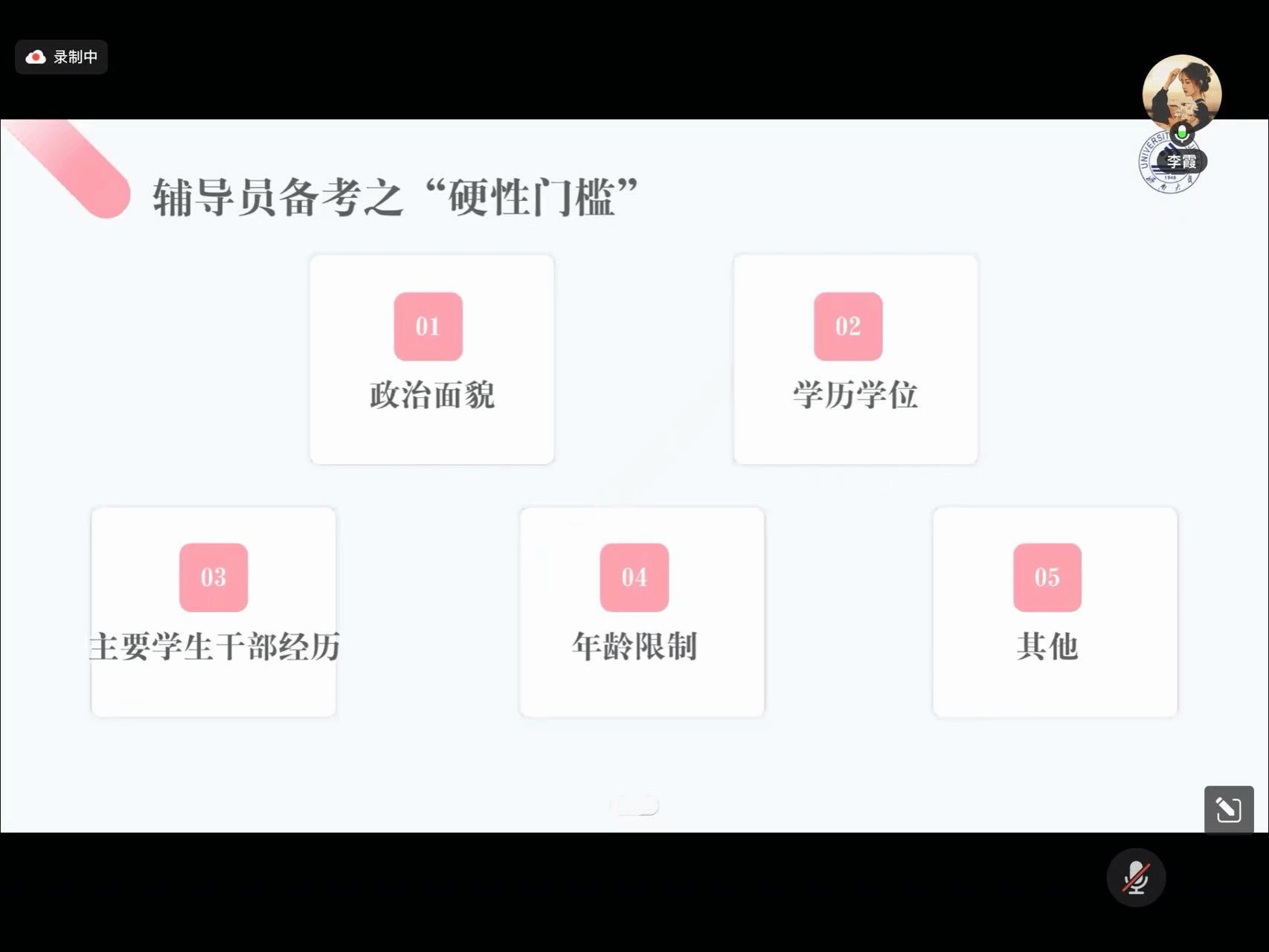李霞校友解读辅导员岗位报考要求,强调笔试需紧扣政策、党团知识与校情,面试要注重结构化练习,通过模拟演练打磨表达与逻辑能力。