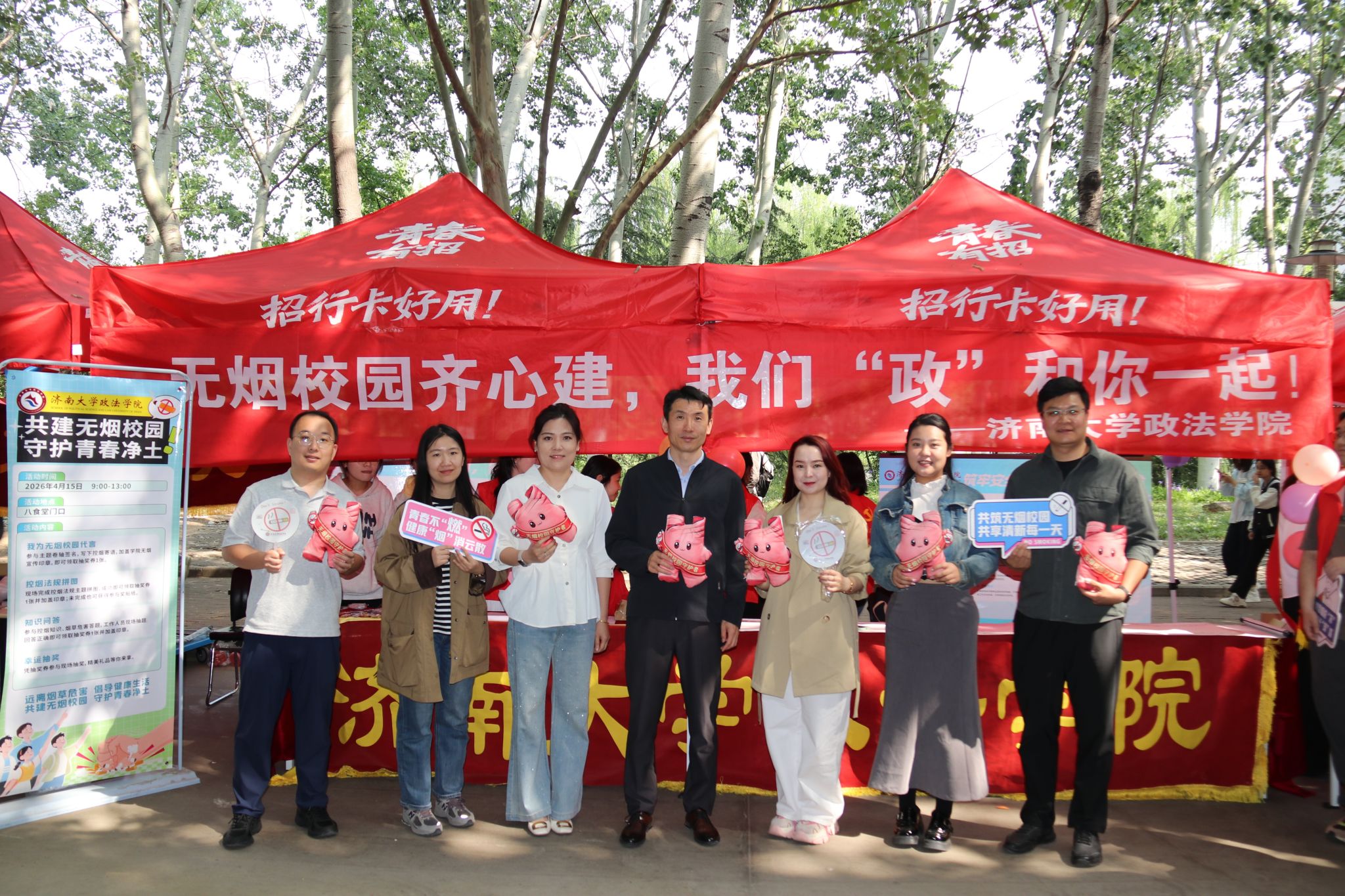 为扎实落实绿色校园、健康校园的建设部署,切实增强全体师生共同建设无烟校园的行动自觉,全力打造洁净清朗、健康向上、文明有序的育人氛围,济南大学2026年首届“你我同行,共建无烟校园”主题活动于4月15日正式拉开帷幕。