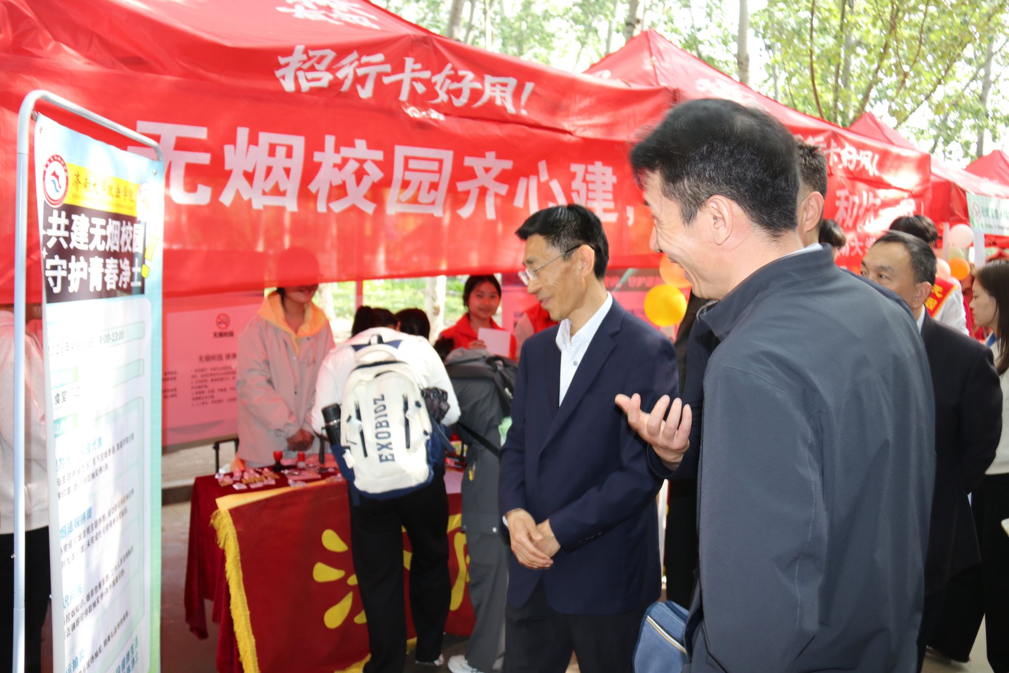 在八食堂广场开展以“共建无烟校园,守护青春净土”为主题的无烟宣传活动,将健康理念、文明素养与宿舍安全、消防知识有机融合,引导师生共筑清新文明校园。
