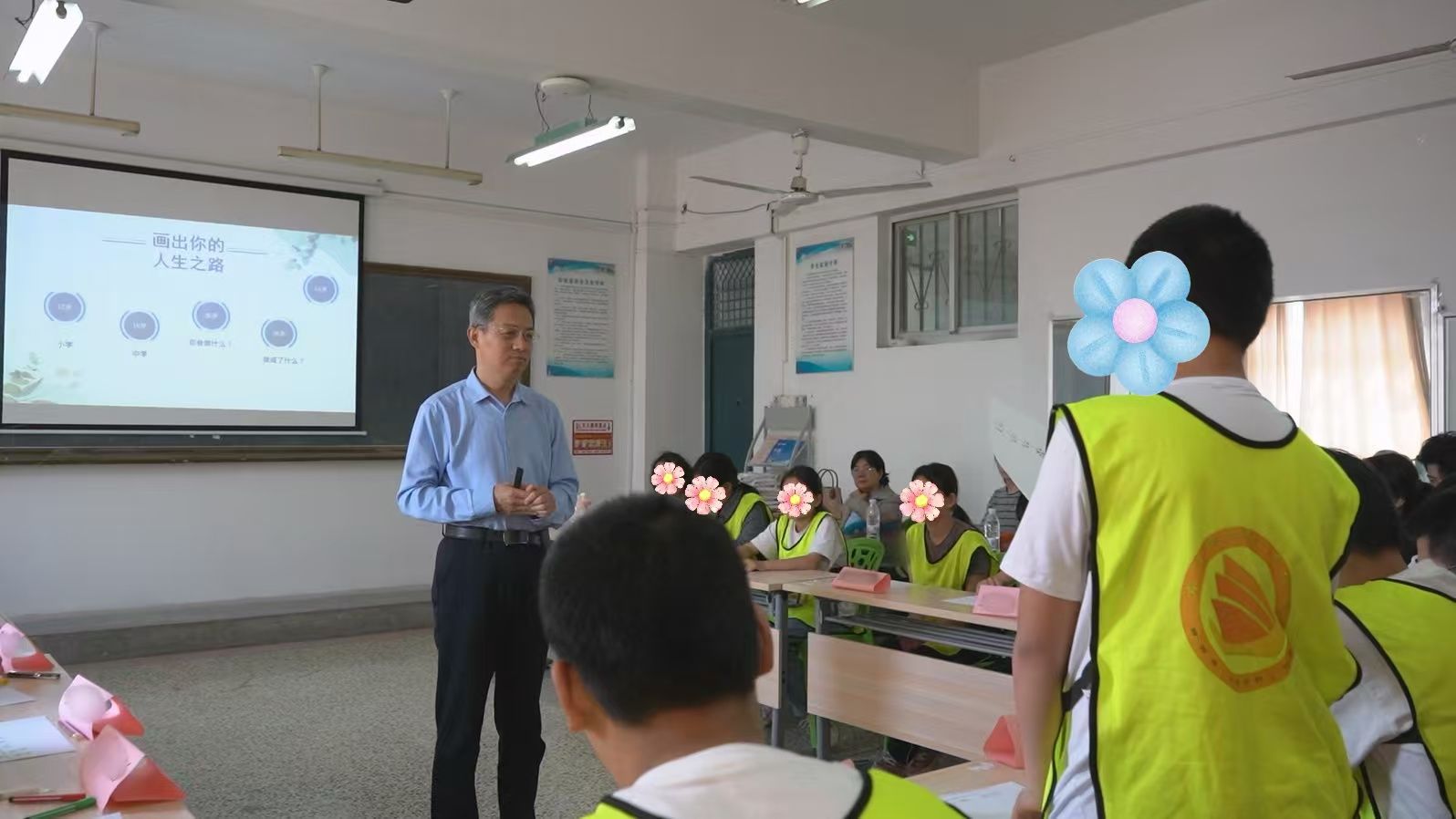 王云岭教授为孩子们开展了以“目标引领航向,信念推动人生”为主题的“生命驿站”工作坊课堂。通过“我是谁”自我画像、性格与优势梳理、绘制人生之路、倾诉内心恐惧等沉浸式环节,引导孩子们深度认识自我、唤醒生命自觉。