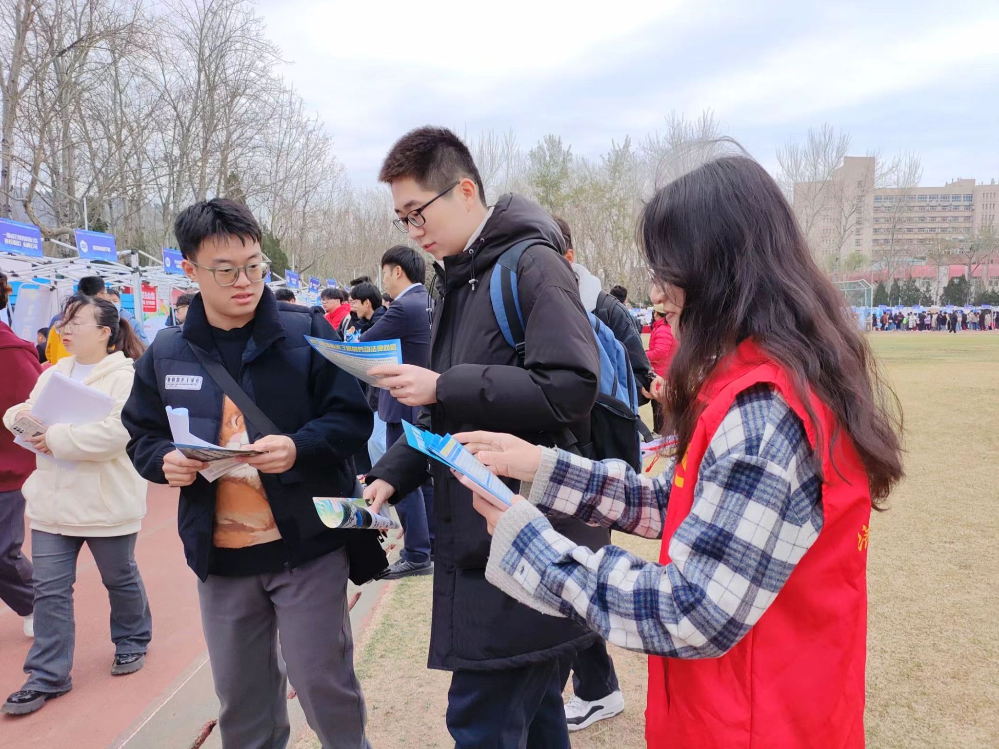 活动现场,相关专业教师与仲裁院工作人员为学生们提供了专业的法律指导,解答了关于就业歧视、试用期规定、社会保险等关键问题。同时,志愿者们发放了相关法律宣传资料,帮助学生们增强劳动就业相关的法律意识,给即将进入职场的同学们及时送上了劳动法律知识储备,更好地推动了本次双选会的高质量进行。此次活动推动了劳动法相关知识和维权意识向广大劳动者的传播,提高了学生的专业认同,体现了劳动与社会保障专业的独特风采,意义非凡!