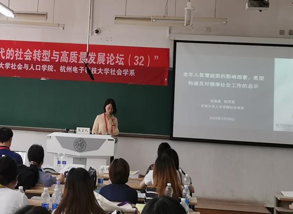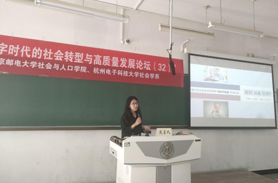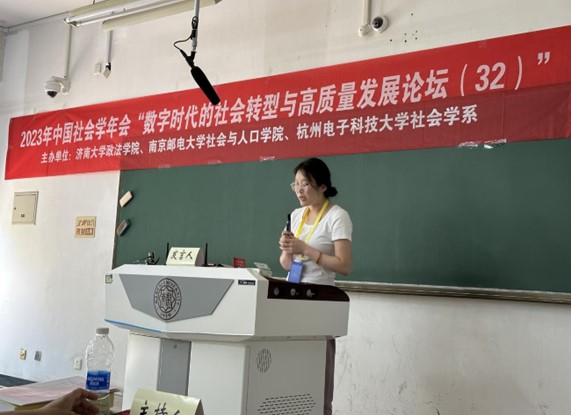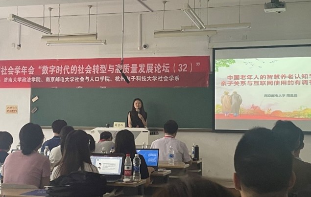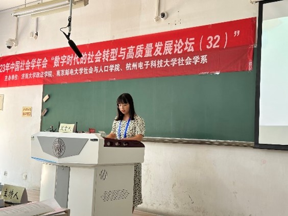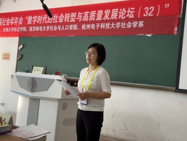 论坛第四单元由济南大学韩钰副教授主持。济南大学张世青教授对如何实现城市老年人的长寿红利进行了理论探讨。东南大学张晶晶副教授研究了老年人智慧就医的影响因素、类型构建及对健康社会工作的启示。济南大学杨汇泉博士基于实践共同体视阈的个案研究,探讨了寄宿学校建设背景下农村留守儿童家庭教育指导的家校社合作路径。浙江师范大学硕士研究生刘伟基于晋中Z镇的考察研究了监督下乡背景下数字技术对乡村关系的影响。济南大学高朋博士以西藏米林县南伊乡为例探讨了共同富裕视域下珞巴族的生计转型。南京邮电大学硕士研究生刘元分析了社会企业参与社区居家养老服务的模式。济南大学硕士研究生刘佳音研究了文化资本在家庭经济地位与农村人口数字技能关系的中介作用。南京邮电大学硕士研究生裴瑾基于异质性视角实证分析了人口老龄化对科技创新的影响。济南大学硕士研究生闫国涛基于SEM模型研究了青年互联网使用影响社会参与的信任机制。南京邮电大学硕士研究生周庆研究了数字融入、社会支持对老年人精神生活共同富裕水平的提升作用。最后,南京邮电大学周建芳教授进行了点评,她指出前面两位教授在如何进行社会科学研究上为研究生们做了很好的示范,鼓励青年学者增强问题意识,深化理论研究以丰富实证社会学研究的内涵。