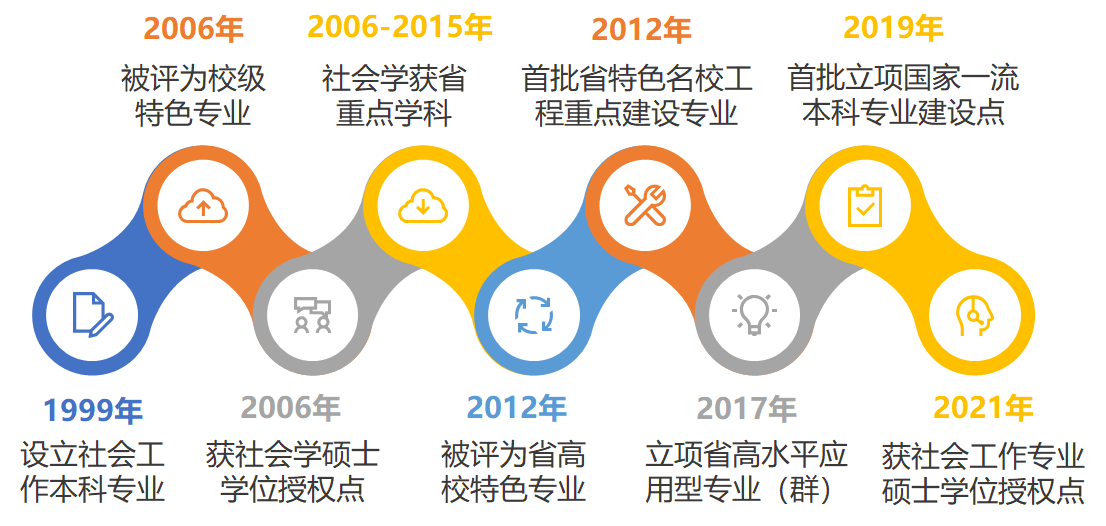 济南大学社会工作专业硕士学位所属的社会学学科2006年获社会学硕士学位授权点,2010年获社会学一级学科硕士学位授权点,2021年获批社会工作专业硕士(MSW)学位授权点,为目前山东省仅有的两个社会学学科专硕学硕齐全的高校之一。社会学学科曾连续两次获评山东省重点学科,为“十四五”期间济南大学重点建设学科、山东省博士点精准培育建设学科。社会工作专业相继入选山东省特色专业、山东省特色名校工程重点建设专业、山东省高水平应用型建设专业(群),并以A+级通过中国社会工作教育协会专业评估,2019年入选首批国家级一流本科专业建设点。2024年1月,社会学系社会工作专业教研室获批首批山东省普通本科高等学校示范性基层教学组织;2月,社会工作棋牌游戏
