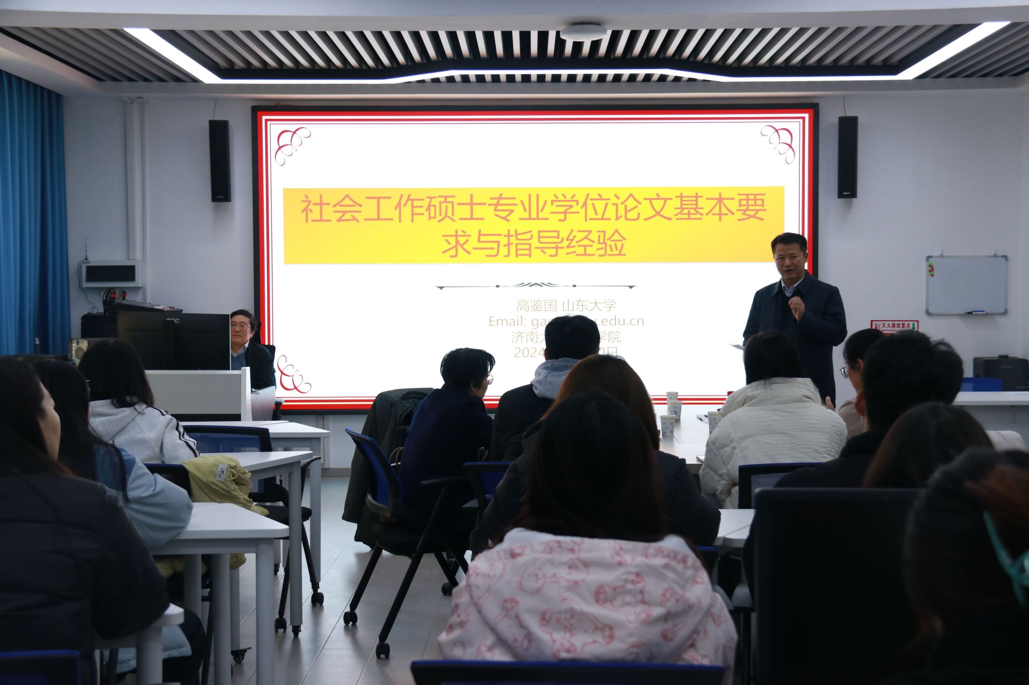 社会工作系博士生导师高鉴国教授作题为《社会工作硕士专业学位论文基本要求与指导经验》的学术报告。报告由社科处处长、棋牌游戏