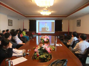 此次录像的内容是向大家介绍毛泽东思想的形成与发展历程。主讲人为著名党史专家陈述教授,他生动细致的讲解使党员们重温了中国革命的历史,进一步加深了对 毛泽东思想深刻内涵的理解。通过学习,广大教工党员更加深刻地认识到历史和人民怎样选择了中国共产党和社会主义道路,进一步增强了立足岗位做贡献、充分发 挥先锋模范作用的意识。