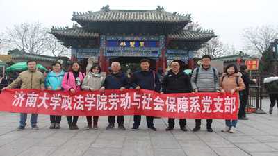 根据“两学一做”教育常态化、制度化的要求,劳动与社会保障系党支部于4月5日开展了“慎思追远国学行,争做‘四有’好老师”主题党日活动,组织全系教工党员赴伟大的教育家孔子故乡——曲阜接受儒家传统文化的洗礼,同时结合自身工作思考如何做有理想信念、有道德情操、有扎实学识、有仁爱之心的“四有”好老师。