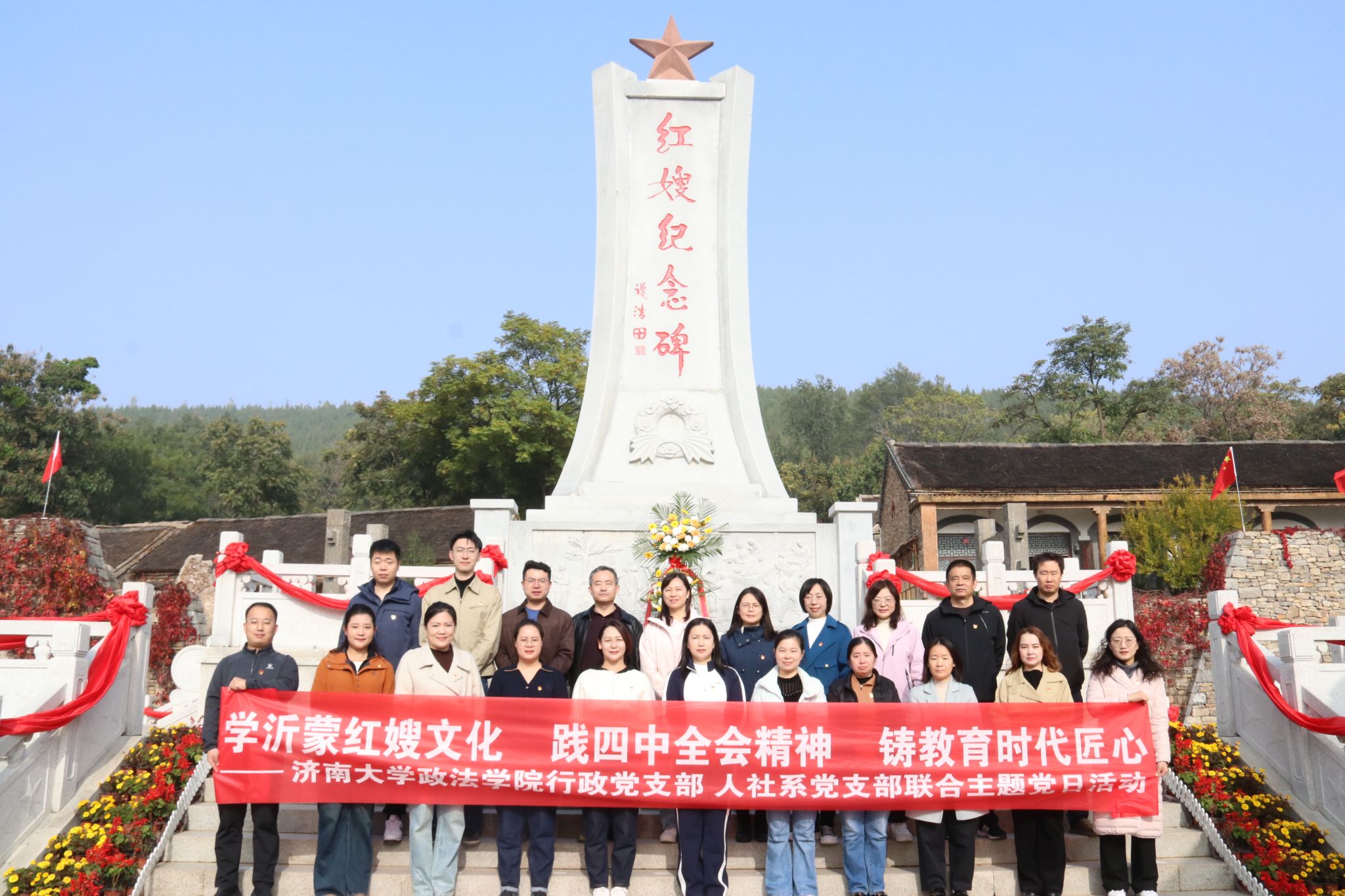 为深入学习贯彻党的二十届四中全会精神,牢记习近平总书记“大力弘扬沂蒙精神,推动红色基因代代相传”的重要嘱托,以红色文化涵养师德师风,将红色基因融入立德树人全过程,10月31日,棋牌游戏 行政党支部、人力资源与社会保障系党支部赴沂蒙革命老区,联合开展“学习沂蒙红嫂文化、铸就教育时代匠心”的主题党日活动暨师德教育实践活动。