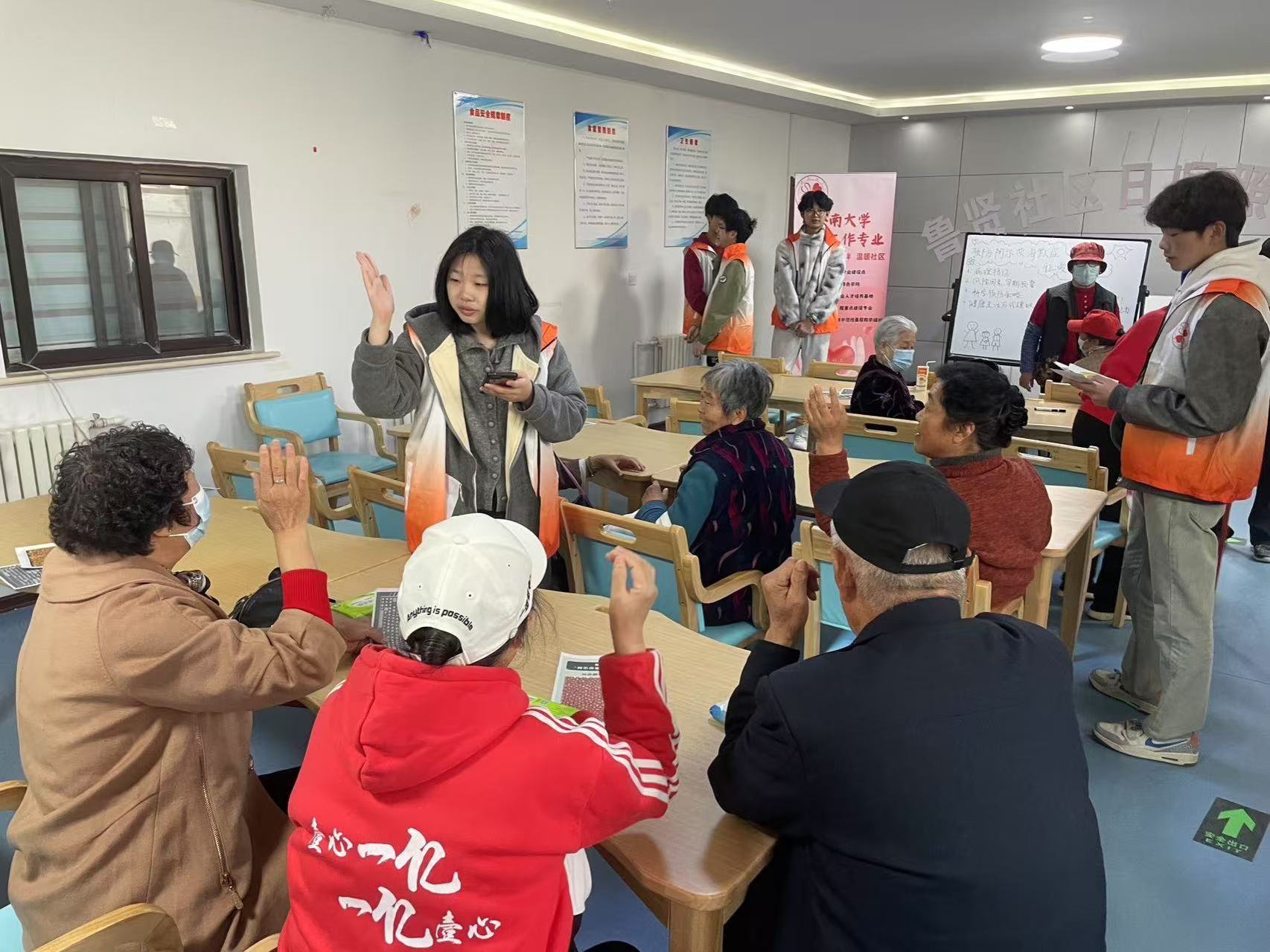 为进一步加深老人们对阿尔兹海默症及其预防方法的认知,活动设计了多项趣味小游戏,包括“找不同”“看字说颜色”以及阿尔兹海默症知识竞答。这些游戏不仅调动了老人们的参与热情,还通过互动方式强化了他们的记忆与认知能力。为提升参与度,同学们准备了纸巾、挂面、洗衣液等贴近生活的实用奖品,深受老人喜爱,现场气氛热烈,老人们积极投入,笑声不断。