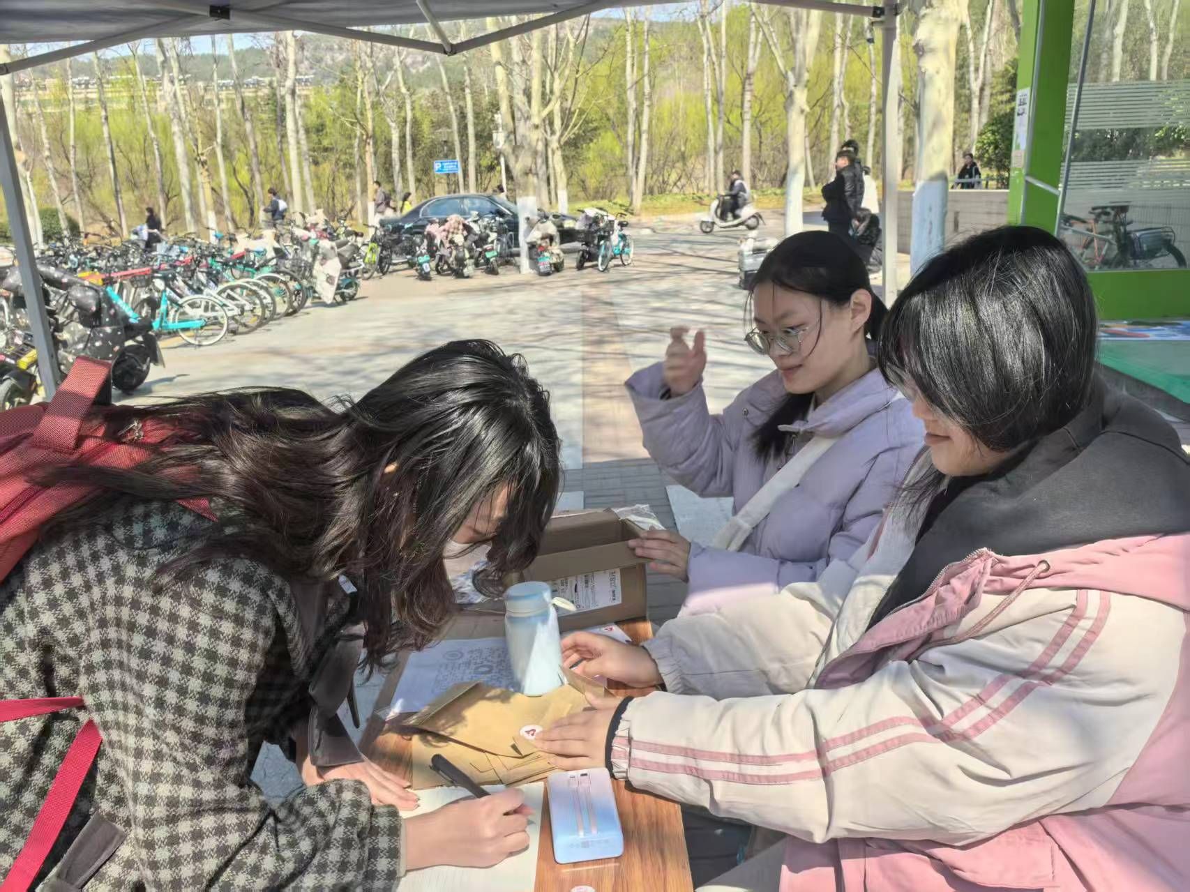 阳光先锋青年志愿者协会(以下简称“政法青协”)志愿者在主校区八食堂东侧广场举办了“‘星火传承,微光成炬’雷锋盲盒惊喜传递”线下活动,与同学们共同执青春之笔,谱写雷锋精神新篇章。