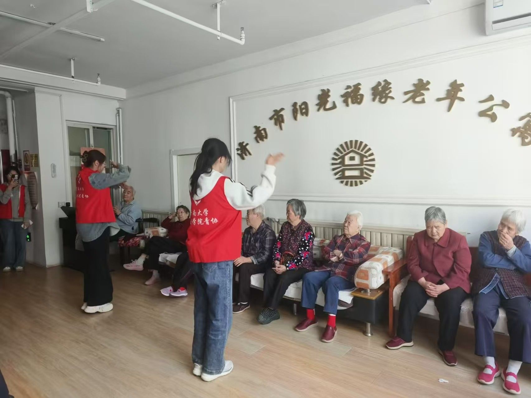 阳光先锋青年志愿者协会(以下简称“政法青协”)的志愿者们于4月20日走进阳光福缘老年公寓,开展阳光助老志愿活动。