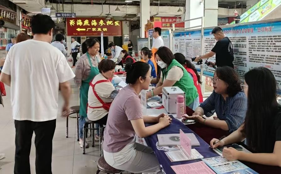 2022级社会工作专业实习生联合四里村街道社工站在济南市海鲜大市场开展“温情端午·公益义诊”服务活动,以实际行动为市场商户的健康和生活保驾护航。四里村街道社工站,充分发挥“五社联动”机制优势,链接多方资源,为周边商户带来丰富多元的便民服务。