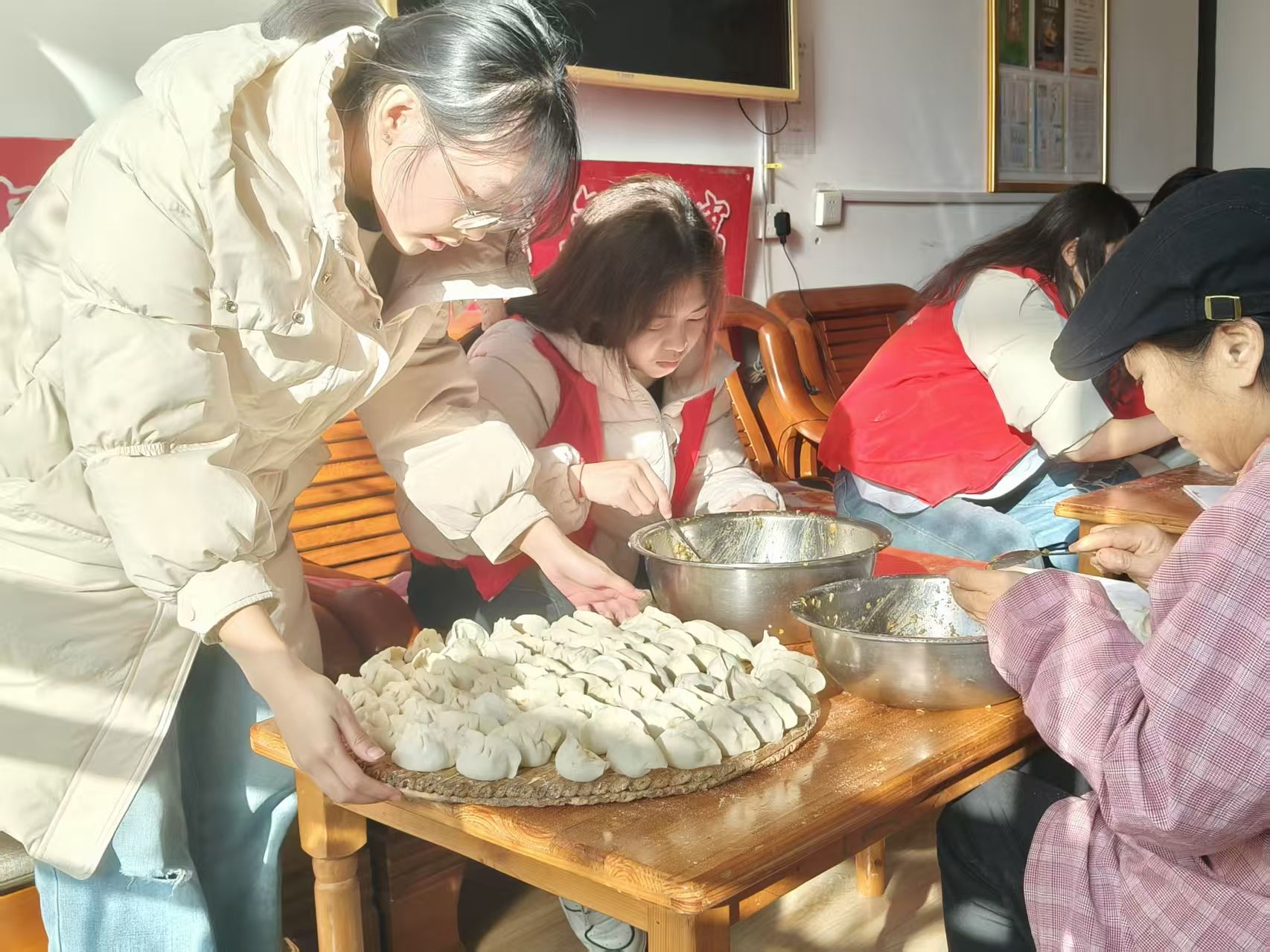 阳光先锋青年志愿者协会(以下简称“政法青协”)走进当地养老院,开展了一场温馨的“情暖冬至包饺子”志愿服务活动,为老人们送去节日的问候与冬日的关怀。