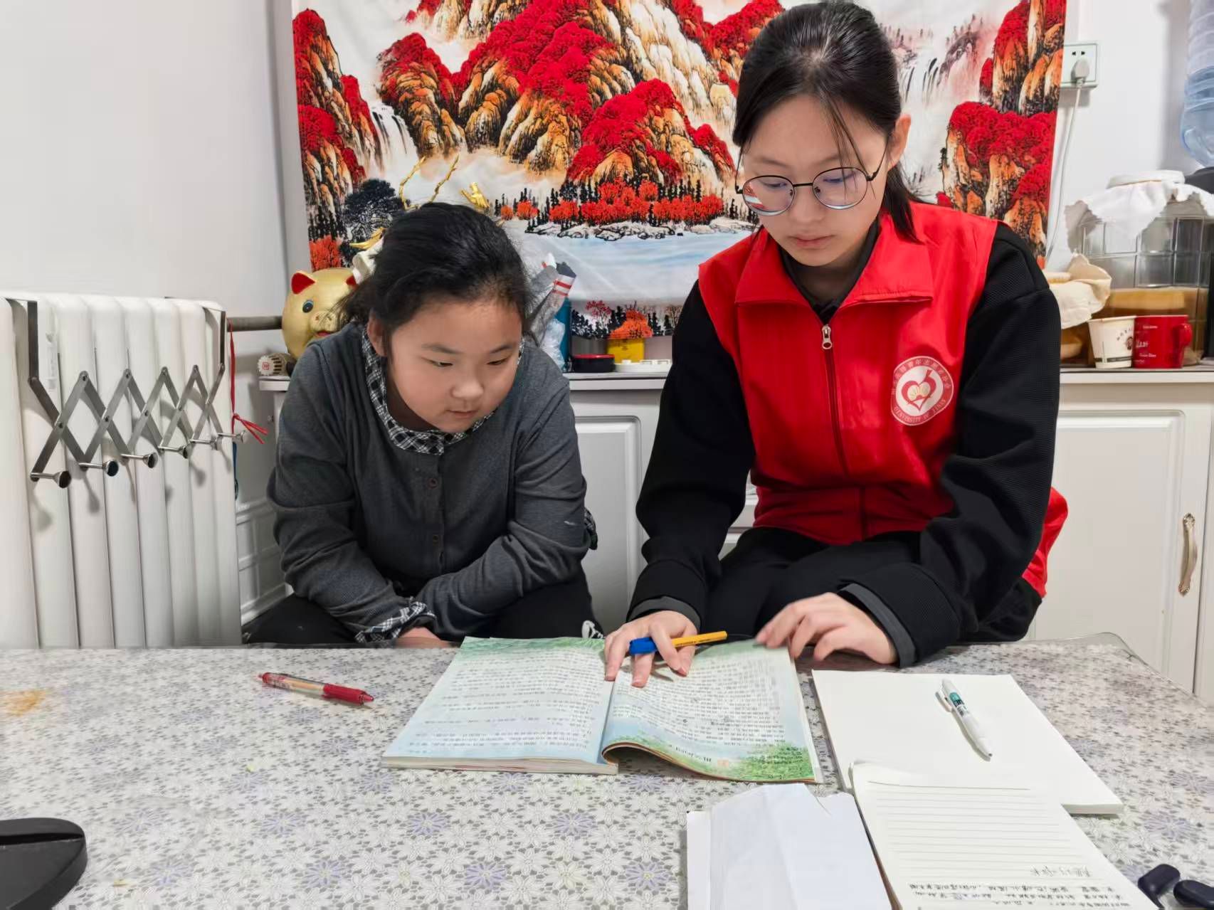 活动伊始,志愿者们依据事先了解到的孩子们的具体情况,有序前往各自对应的服务点位开展工作。一部分志愿者在社区服务站的活动室内耐心地为前来求助的孩子们答疑解惑,针对他们当天课程中的难点、易错点进行细致讲解,并通过举例和练习帮助他们巩固知识点。另一部分志愿者们则走进服务儿童的家中,在安静的环境里与孩子面对面询问交流,不仅检查作业完成情况,还引导他们梳理知识点,温习近期所学的重点内容。志愿者们用浅显易懂的方式,化繁为简,让孩子们在轻松的氛围中解决困惑,重拾学习的信心。