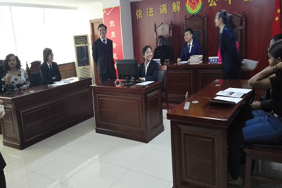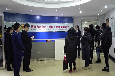 济南市中正荣凯法律服务所李荣凯主任首先详细介绍了法律服务所的服务宗旨、发展历史、团队规模、所创佳绩等留学生关心的问题,然后带领留学生循序参观了法律服务演播室、律师服务工作室、主任办公室等工作场所,留学生表现出极大的参与兴趣,纷纷扮演不同的角色体验法律服务工作。最后,学生们来到人民调解中心,分别扮演不同的角色,担当不同的职责,模拟体验人民调解工作。通过模拟实验,留学生对中国的人民调解工作有了直观的认识和感受,加深了对中国国情的了解和法律体系的认识,有利于开展更多进一步的合作和交流。
